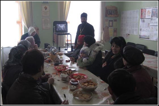 В завершение панихиды настоятель храма иерей Виктор Кобзов обратился к прихожанам с краткой проповедью, рассказал о том, как важно молиться об усопших. Наша молитва об усопших к Богу и добрые дела — это то единственное, но в месте с тем и действенное средство, которое может помочь им, а иногда и в корне изменить посмертную их участь. После панихиды помощник благочинного по миссионерской работе Сергей Железняк провел для прихожан кинолекторий на тему «По ту сторону земной жизни». Фильм рассказывает о том, что ожидает всех нас после смерти, о том, как важно достойно подготовиться к встрече со Христом. Священник-миссионер Олег Стеняев на протяжении всего фильма отвечает на самые разные животрепещущие вопросы, которые касаются не только загробной жизни, но и духовной жизни вообще, борьбы с соблазнами и страстями.
