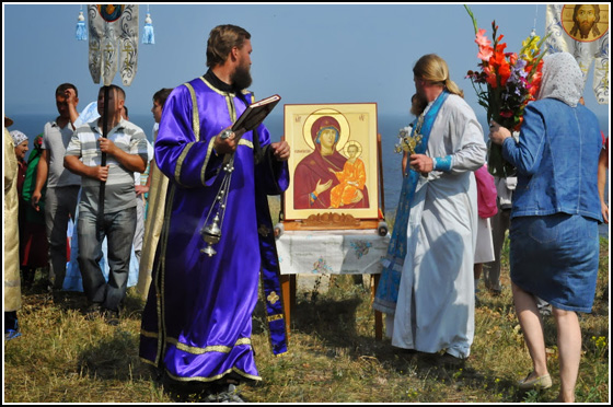 В селе Икское Устье на месте, где некогда располагался алтарь старого храма, была поставлена икона, перед которой верующие спели акафист. Для жителей села это был настоящий праздник. В конце настоятель Богоявленского храма протоиерей Алексей обратился ко всем со словом проповеди: