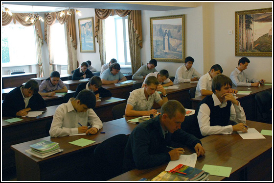 Вначале абитуриенты сдавали экзамен по русскому языку и прошли собеседование с Ректором семинарии, митрополитом Казанским и Татарстанским Анастасием. На следующий день поступающие показали свои знания по Закону Божиему и истории Церкви, а также навыки чтения на церковно-славянском языке. Кроме этого, у желающих учиться в семинарии проверили музыкальные данные.
