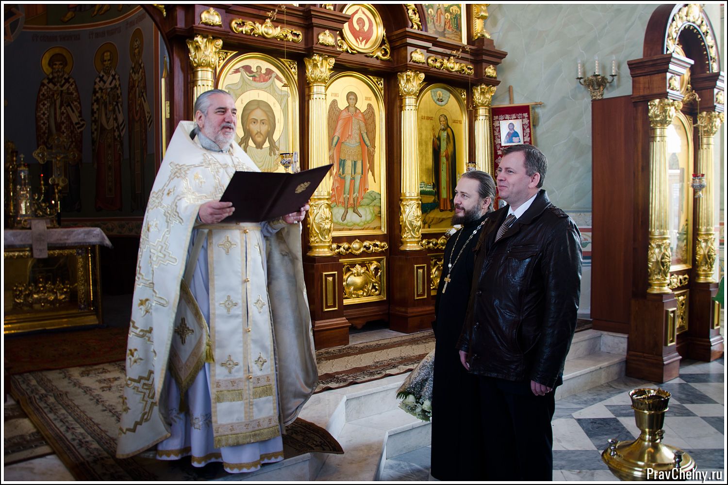Священник пожелал собравшимся прихожанам, чтобы «поменьше было в нашей жизни разобщенности, и побольше таких моментов, когда люди, причастившись Святых Христовых Таин, являют собой одно целое «едиными устами и единым сердцем» славят Бога, и можно с уверенностью сказать, что Христос посреди нас, что есть любовь истинная». Батюшка выразил надежду, что эта роспись «поспособствует молитвенности, больше укрепит нас в вере, чтобы мы стали лучше, чище и добрее». Также настоятель пожелал всем здравия душевного и телесного, поблагодарил Попечительский совет храма и вручил памятные грамоты благотворителям, содействовавшим в этом благом деле преображения Дома Божия.