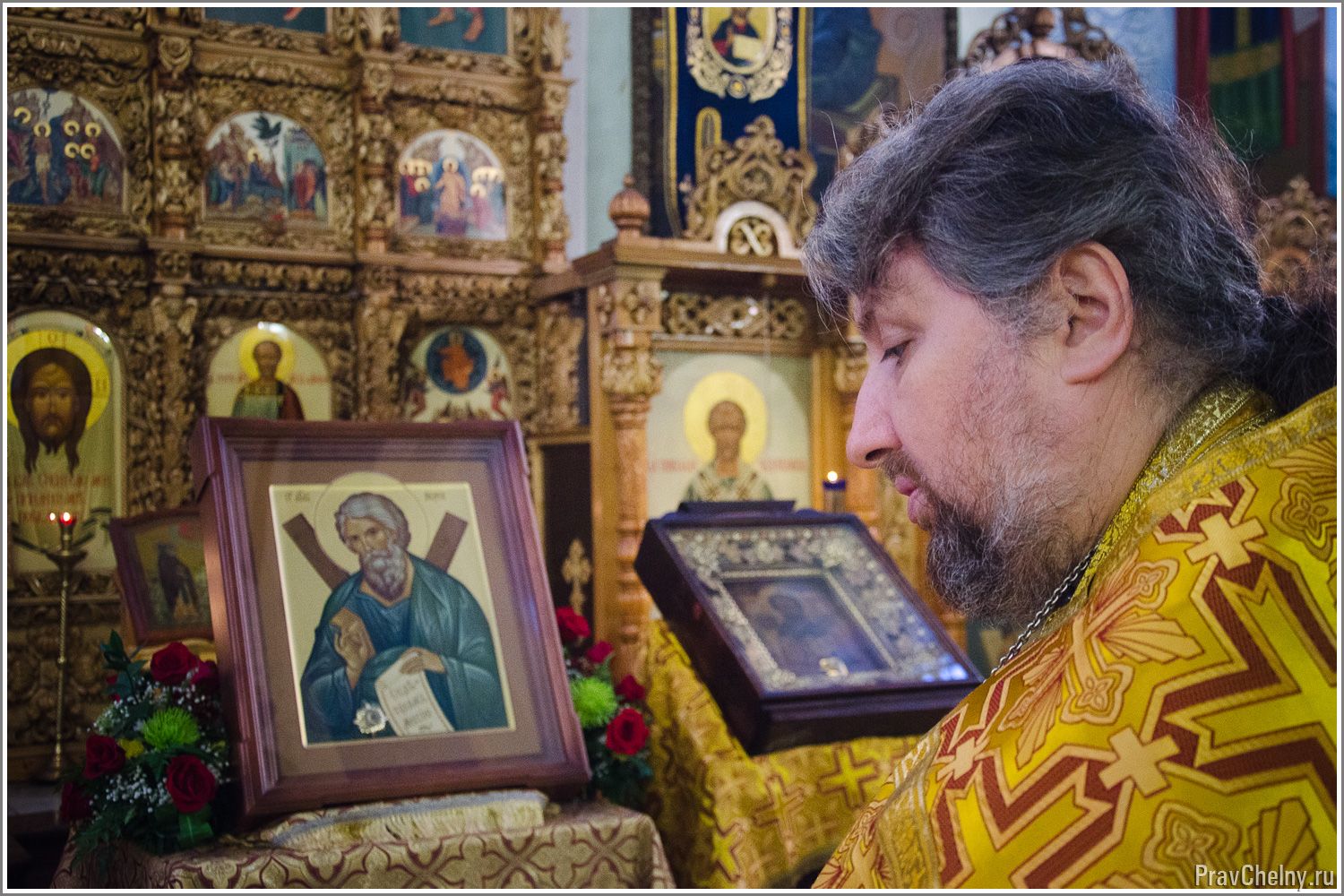 Набережные Челны, 13 декабря — Православное Закамье, Вероника Вяткина. Святые мощи древние христиане всегда с благоговением собирали и хранили, раскрывали и переносили, устанавливали особые даты в честь их обретения. И вчера, как и в древности, 12 декабря в Боровецком храме верующие сердца с трепетом ожидали приезда мощей апостола Андрея Первозванного из Екатеринбургской епархии. Молебным пением встретили настоятель собора, протоиерей Андрей Дубровин, и прихожане не только эту знаменитую святыню, но и икону святителя Николая Чудотворца, которая обычно находится лишь в алтаре. На тех, кто никогда не видел эту святыню, она производит сильное духовное впечатление.