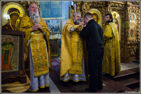 На Божественной литургии в честь святого апостола Андрея настоятель принял поздравления с именинами. Клирики собора пожелали благочинному здоровья и помощи Божией в пастырском служении. В свою очередь отец Андрей поздравил певчего хора Андрея Ганеева с днем тезоименитства и подарил ему икону Ангела Хранителя.