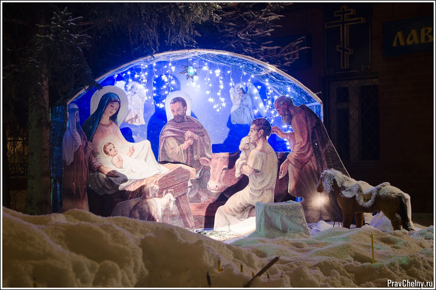 Традиционно в снежном покрове церковного двора был раскинут Рождественский вертеп. Объемные фигуры точно воспроизводили Божественное Пришествие так, что люди не могли пройти мимо.
