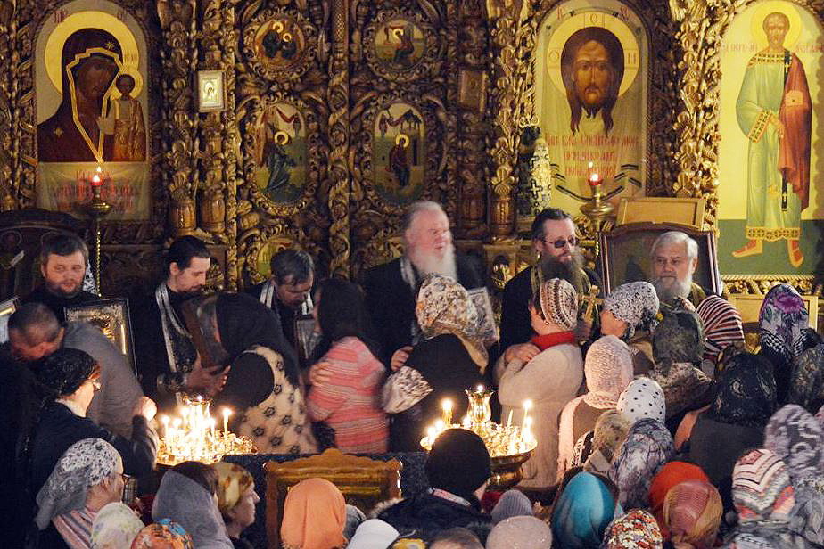 По завершении Литургии были совершены крестные ходы вокруг храмов