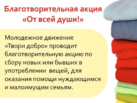 Молодежное движение «Твори добро» проводит благотворительную акцию