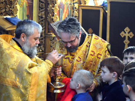 Более сотни воспитанников детской воскресной школы и клуба юных спасателей «Спас» Свято-Вознесенского собора Набережных Челнов приступили к Причастию