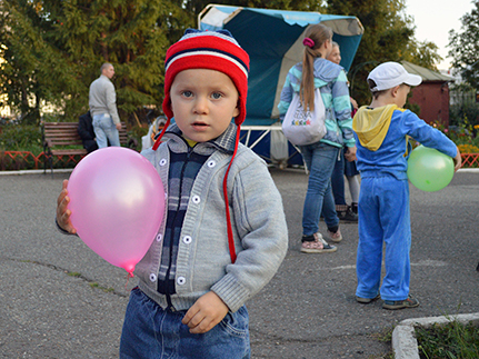 Накануне праздника во время Всенощного бдения ребята встречали прихожан у храма и дарили воздушные шары