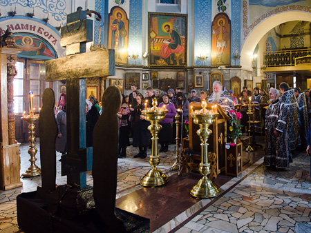 В Свято-Вознесенском Архиерейском подворье совершен первый в этом году чин Пассии. Собором духовенства была отслужена вечерня с Великим прокимном и акафист Страстям Христовым.