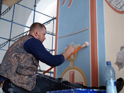 Художники-иконописцы, прибывшие из старинного Палеха неделю назад, приступили к росписи внутреннего интерьера храма Серафима Саровского