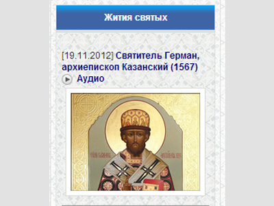Уважаемые читатели сайта Pravchelny.Ru, сообщаем Вам, что наш Интернет-ресурс пополнился новой рубрикой «Жития святых». Особенностью раздела является то, что кроме текстового описания жития святого, празднуемого в текущий день, он содержит и аудио-версию.