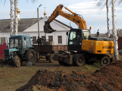 29 октября в храме Архистратига Божия Михаила закипела нешуточная работа: землеройные экскаваторы рыли траншею, получился почти 200-метровый окоп в высоту два с половиной метра. Затем началась прокладка современной пластиковой водонапорной трубы
