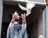 7 апреля – Благовещение Пресвятой Богородицы. После праздничной Божественной Литургии – выпуск в небо голубей, шаров с бумажными голубями, угощение прихожан сдобными жаворонками. 8 апреля – Вход Господень в Иерусалим (Вербное воскресенье).