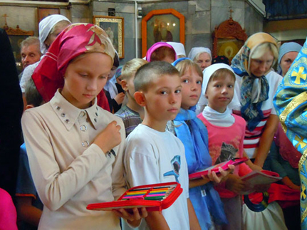 30 августа после Божественной Литургии в Свято-Вознесенском соборе прошел молебен с благословением учащихся на новый учебный год, который стал в нашем приходе традиционным. Несмотря на будний день, в храме было шумно от детских голосов.