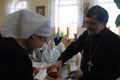 После праздничной службы в трапезной храма собрался весь приход. Ключарь собора протоиерей Андрей Дубровин поздравил работников с памятной датой в истории собора и вручил архиерейские грамоты сотрудникам собора.