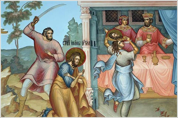 Священное Предание рассказывает нам о том, что после усекновения главы святого Иоанна Предтечи нечестивая Иродиада не позволила предать её погребению вместе с телом пророка, но, надругавшись над ней, закопала около своего дворца. Тело же тайно забрали и погребли ученики его. Жене приближённого царя Ирода было известно, где Иродиада закопала главу. И она решила перезахоронить её на Елеонской горе в одном из поместий. Когда до царского дворца дошли слухи о проповеди Иисуса и совершавшихся им чудесах, Ирод вместе с женой Иродиадой пошли проверить, на месте ли глава Иоанна Крестителя. Не найдя её, они подумали, что Иисус Христос — это воскресший убитый ими святой (Мф. 14, 2)