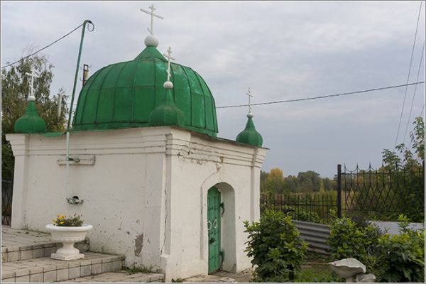 История: Покровская часовня установлена в 1799 г. на месте алтаря старой деревянной Покровской церкви, разобранной из-за ветхости в 1798 г. Является старейшей каменной постройкой Елабуги. Отреставрирована. Одноэтажный кубический объем имеет сводчатое перекрытие, его завершает центральный невысокий купол и четыре малых купола сходного очертания. Композиция часовни напоминает «сени» или восточный караван-сарай, что связано с наличием по углам небольших выступов, напоминающих колонны и завершенных декоративными куполами.